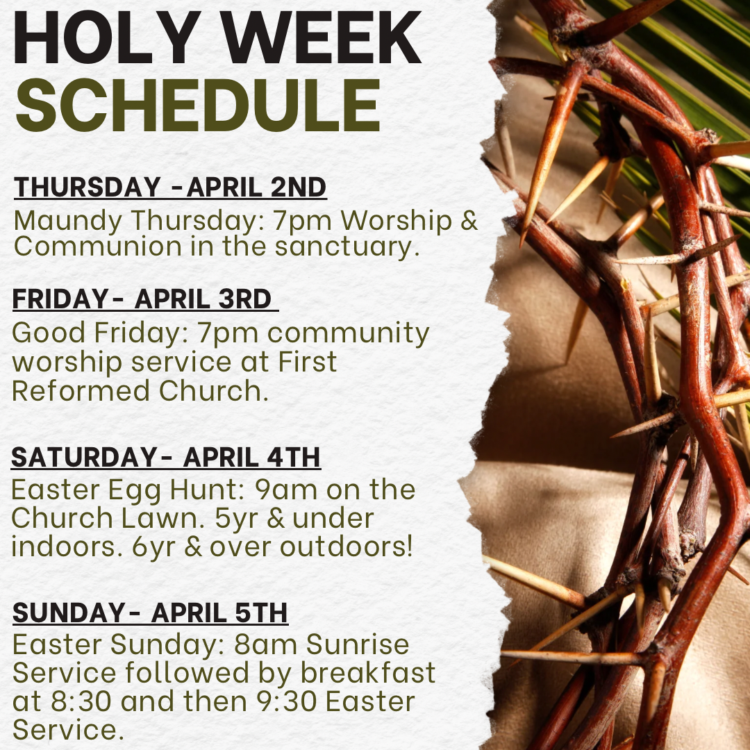 Sunday School at 8:50 - Last Day is April 12th